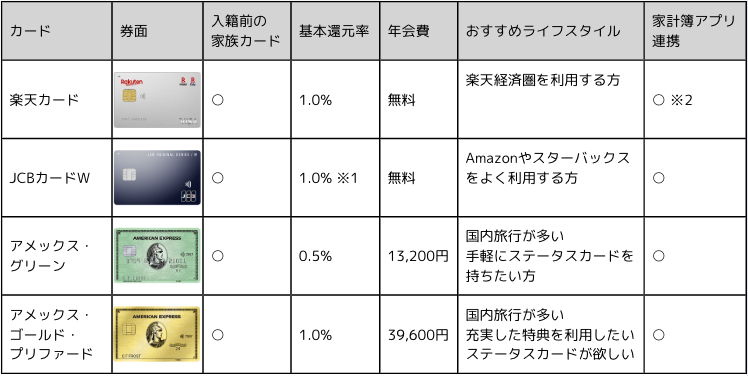 上記のカードはいずれも同棲生活に役立つメリットが満載です。それぞれのカードの特長を比較し、自分たちの生活スタイルに最適なカードを選ぶことで、家計管理がよりスムーズになります。